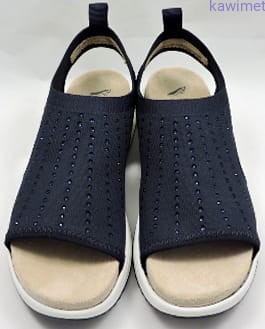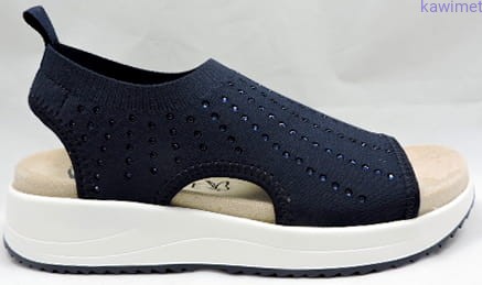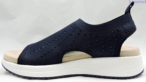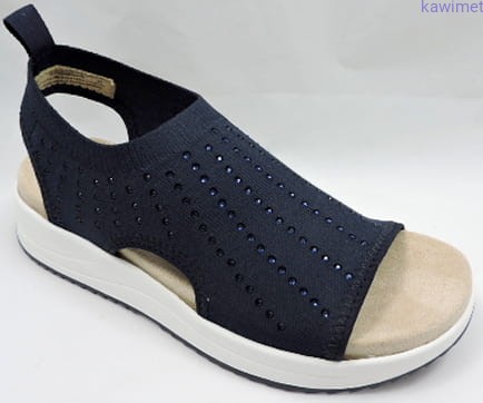 Bardzo lekkie i wygodne sandały damskie w stylu sportowym. Cholewka wykonana z elastycznej tkaniny, ozdobiona cyrkoniami. Wkładki wyjmowane z możliwością umycia pod wodą.