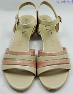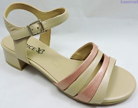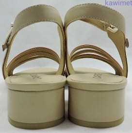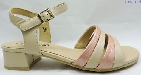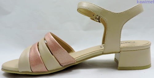 Eleganckie sandały damskie na 35mm obcasie zapinane w kostce na rzep. Klamerka spełnia funkcję ozdobną. Cholewka wykonana za skóry licowej i lakierowanej. Miękka wkładka poprawia komfort użytkowania.