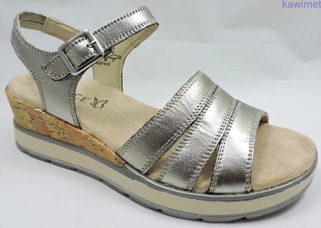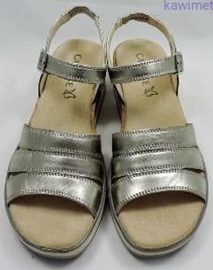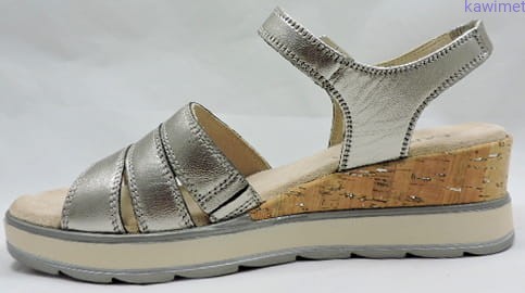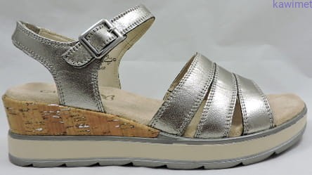 Bardzo wygodne sandały damskie na 55 mm koturnie zapinane w kostce na rzep. Cholewka wykonana ze skóry licowej. Miękka wkładka poprawia komfort użytkowania.