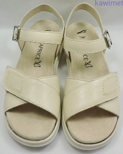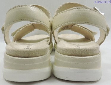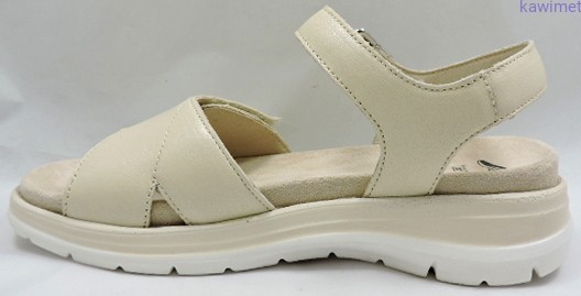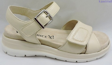 Bardzo wygodne sandały damskie na lekkim podwyższeniu zapinane na rzep. Cholewka wykonana ze skóry licowej. Miękka i wyjmowana wkładka znacząco poprawiają komfort użytkowania.