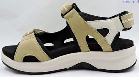 Bardzo wygodne sportowe sandały damskie zapinane na rzep w podbiciu, w palcach i pięcie. Cholewka wykonana ze skóry nubukowej połączonej z tkaniną. Miękka i wyprofilowana wkładka poprawia komfort użytkowania. Podeszwa amortyzująca.