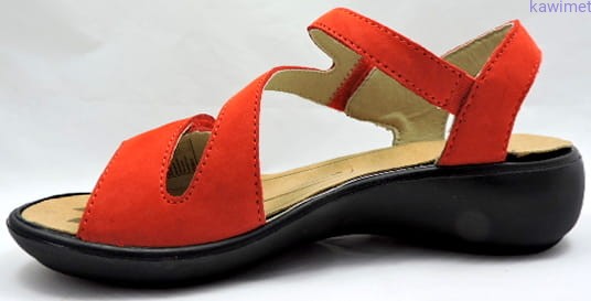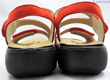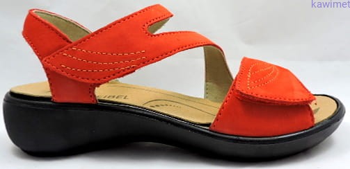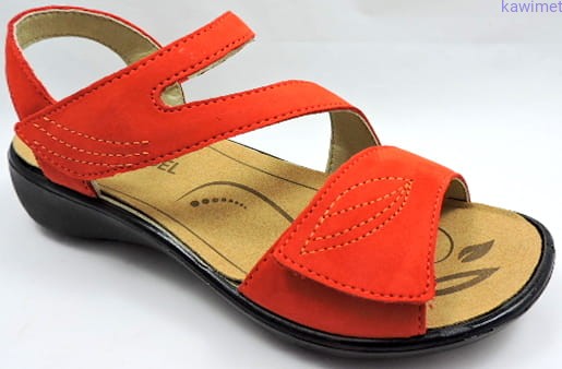 Klasyczne sandały damskie zapinane na rzep w podbiciu i w palcach. Cholewka wykonana ze skóry nubukowej. Miękka wkładka z możliwością wyjęcia poprawia komfort użytkowania.
