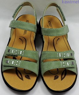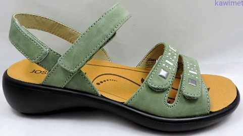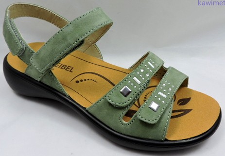 Klasyczne sandały damskie zapinane na rzep w pięcie, podbiciu i w palcach. Cholewka wykonana ze skóry nubukowej. Miękka wkładka z możliwością wyjęcia poprawia komfort użytkowania.
