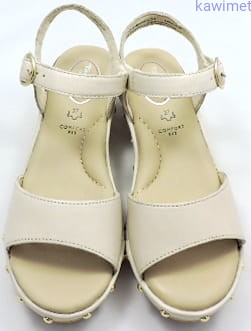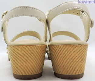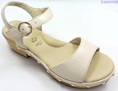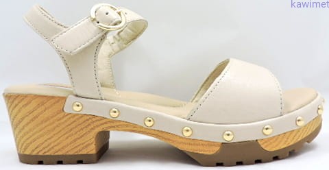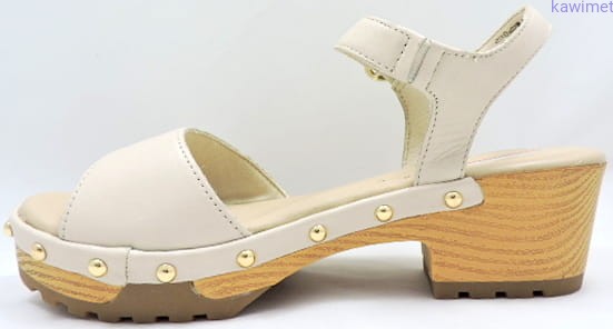 Sandały damskie na 50mm obcasie zapinane w kostce na klamerkę. Cholewka wykonana ze skóry licowej. Podeszwa jest imitacją drewna. Miękka wkładka poprawia komfort użytkowania.