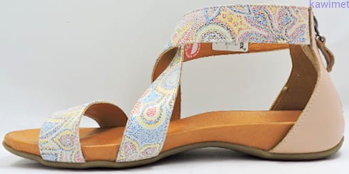 Bardzo wygodne sandały damskie polskiej firmy "Tanex" na płaskiej podeszwie. Pięta zakryta zapinana na suwak, palce odkryte. Cholewka wykonana ze skóry licowej. Lekko profilowana wkładka poprawia komfort użytkowania.