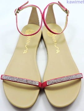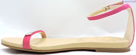 Bardzo delikatne i kobiece sandałki damskie na płaskiej podeszwie hiszpańskiej marki Unisa wykonane ze skóry zamszowej i licowej zapinane w kostce. Idealnie sprawdzą się na upały, do letnich kreacji.