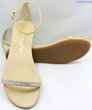 Bardzo delikatne i kobiece sandałki damskie na płaskiej podeszwie hiszpańskiej marki Unisa wykonane ze skóry zamszowej i licowej zapinane w kostce. Idealnie sprawdzą się na upały, do letnich kreacji.