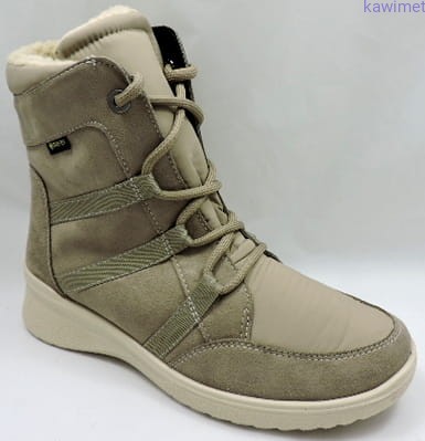 Wygodne trzewiki damskie w poszerzonej tęgości H z membraną klimatyczną Gore-tex. Sznurowane, dodatkowy suwak od wewnętrznej strony ułatwia zakładanie. Dzięki membranie buty nie przemakają a jednocześnie oddychają. Cholewka wykonana z wysokiej jakości tkaniny. Wkładka wyjmowana.