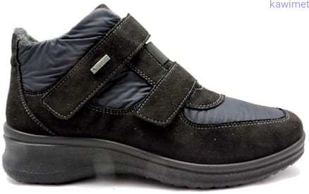 Wygodne trzewiki damskie w poszerzonej tęgości H z membraną klimatyczną Gore-tex zapinane na rzepy. Dzięki membranie buty nie przemakają a jednocześnie oddychają. Cholewka wykonana z wysokiej jakości tkaniny. Wkładka wyjmowana.