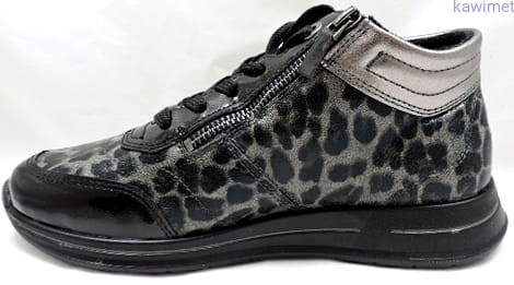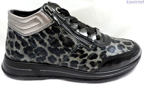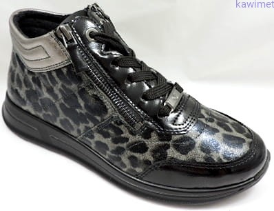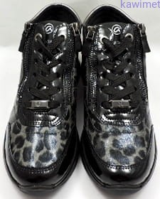 Sportowe trzewiki damskie w poszerzonej tęgości H. Dodatkowe suwaki na podbiciu ułatwiają wkładanie. Cholewka wykonana ze skóry lakierowanej. Wzór zgodny ze śladem stopy co czyni je bardzo wygodnymi.